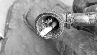 雕塑的烟袋锅被当成了烟灰缸 新文化记者 马玉轩 摄