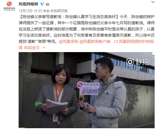 陈世峰爸爸曾写道歉信称陈世峰认真学习,生活态度良好。学习认真就可以杀人吗?把别人女儿杀了,说句对不起就完了?这是教育的悲哀。护犊子是做父母的本能反应,但是怎么能孩子都杀了人了还在说孩子哪里哪里好,这样护犊子的意义又何在呢?陈世峰父母和刘鑫父母一样,孩子犯错不是教导孩子怎么改正错误,而是去包庇孩子的错误。