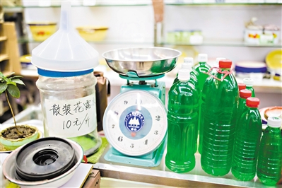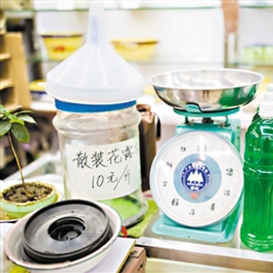 走进这家店,里面一切都还保留着上世纪七八十年代的样子:顶上没有空调只有吊扇,两排玻璃柜台一字排开,顾客在玻璃柜台之外叫喊,售货员在玻璃柜台里面拿货。每次完成交易,店员就会在旁边的小本子写字或者在算盘上拨弄几颗珠子记账。店里除了大门剩下三面都是一字排开的玻璃柜,里面则是清一色的“国货”。一面是卖化妆品、洗漱用品为主,著名的国营品牌有大笨象冲凉液、猪鬃毛牙刷等;对面则是穿戴的衣物;剩下的一面则摆着杂货,还有镇店之宝——十元一斤、绿油油的散装花露水。有意思的是,虽然如今已经进入电子支付年代,但励红百货依然只收现金,讲究“一手交钱一手交货”。