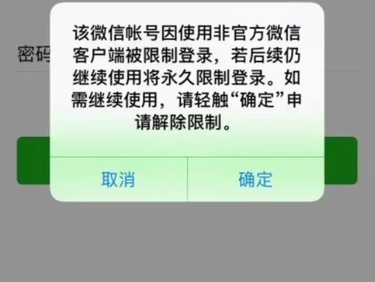 微信中心给出的封号理由是:该微信账号因使用非官方微信客户端被限制登录,若后续仍继续使用将永久限制登录。