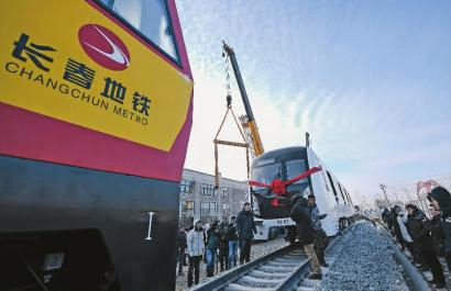 A04版12月25日9时许,位于长春市富民大街的西湖车辆段内一派繁忙,经过1个半小时,6节车厢完成吊装、连接。与长春地铁1号线以红白为主色调的列车相比,长春地铁2号线列车外观主色调为蓝白,凸显长春冰雪文化,工作人员给它起了个好听的名字“蓝精灵”。长春轨道交通集团副总经理江涛表示,地铁2号线列车届时会向社会公开征名。长春地铁2号线列车:
