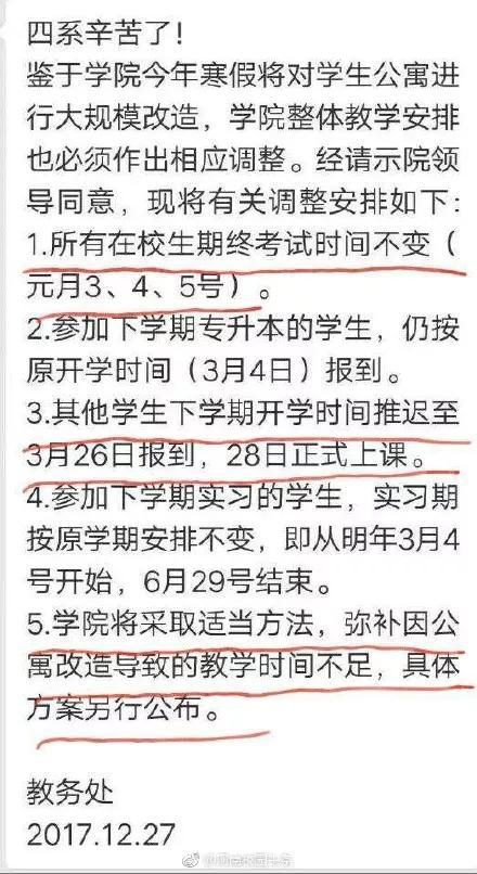 据@河南校园头条 ,因河南检察职业学院对学生公寓进行大规模改造,开学时间推迟。