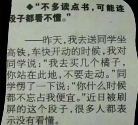 “我买几个橘子去,你就在此地”这句话本出自朱自清的短片散文《背影》,是朱自清的父亲对朱自清说的话。