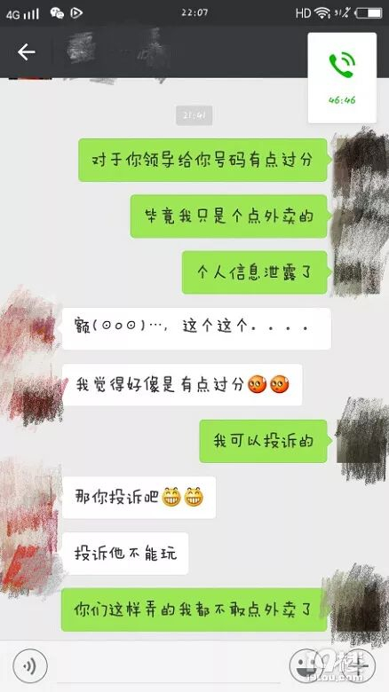 网友B:送完外卖给楼主打了个电话,知道是女的,就把号码给出去了!也是醉了,这个真的要投诉的,个人隐私懂不懂的?