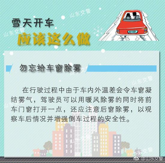 #山东交警话安全# [雪天开车应该怎么做?]据中央气象台, 预计,1月2日至4日,甘肃东部、陕西、山西、河北南部、山东、河南、湖北中北部、安徽中北部、江苏中北部等地将先后出现中到大雪或雨转雪。雪天开车应该怎么做?