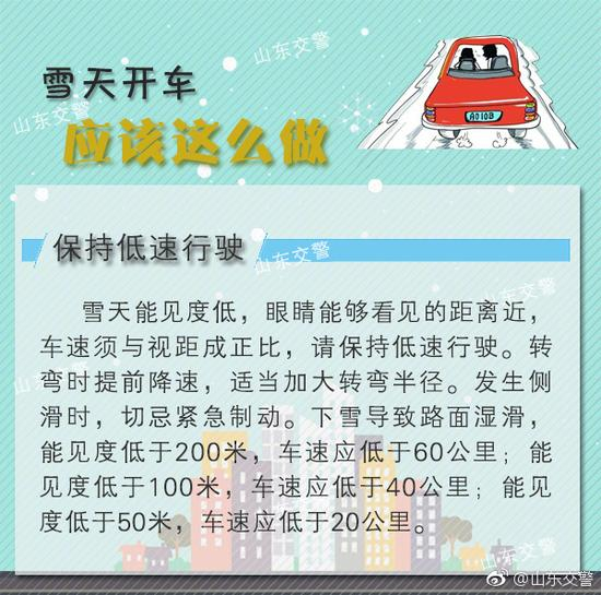 多地现中到大雪 山东交警:雪天开车应该怎么做?