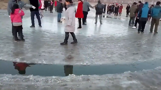 从视频中可以看到,冰圈上载着十几名游客,他们或者自拍,或者感受一把冰上“旋转木马”,气氛很是欢乐。“没有人注意到是怎么形成的,发现的时候就挺大了,”当地一名村民说,“村里80多岁的老人也说从来没见过。”