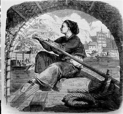 | 1858年《伦敦新闻画报》插图:广州珠江上的船女。 |