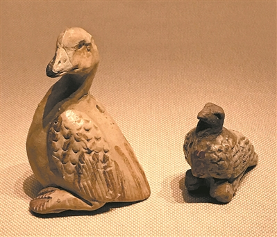 | 吉州窑白釉褐彩鸭,玩具。采用捏塑、添彩、施釉等技法,捕捉到鸭在生活中的原态,活灵活现。 |