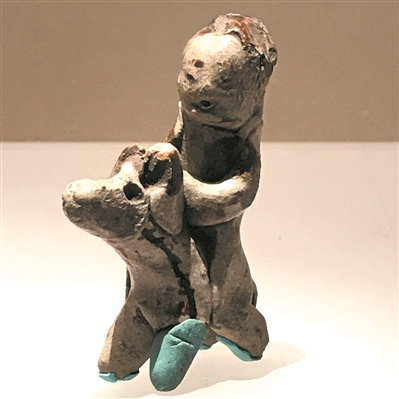 | 宋吉州窑点彩骑马人物塑像,玩具,人大马小,不失童趣。通身施青白釉,黑彩点绘。 |