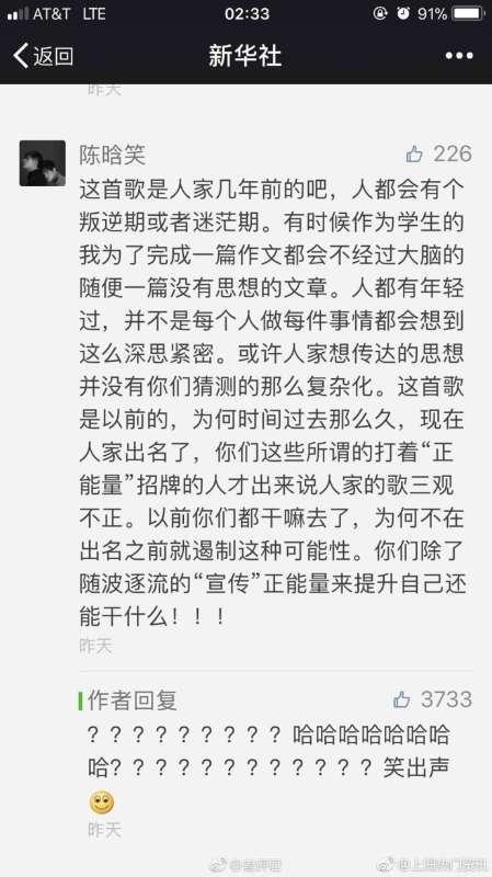 法制晚报·看法新闻 1月6日,新华社官方微信公众号公布一篇《PG_ONE这首歌疑似教唆吸毒,虽道歉下架,可情况并不那么简单……》,遭到一些网友质疑,但新华社小编对这些质疑的回复,不禁让人疯狂打Call。