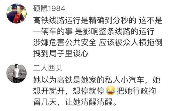 对此,有网友表示该女子的行为影响整条线路的运行,涉嫌危害公共安全。