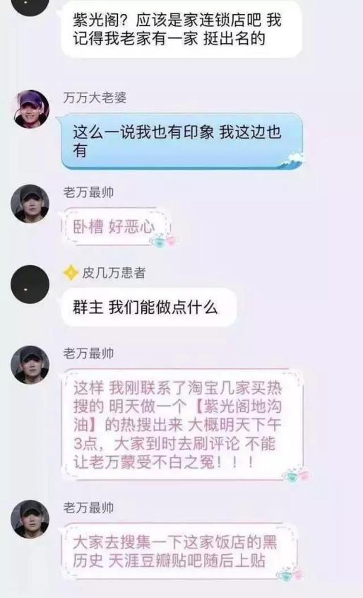 1月7日,微博上曝出PG One粉丝误以为紫光阁是一个饭店官微,疑买热搜话题“紫光阁地沟油”想搞垮它。同时,在微博搜索“紫光阁”,除了排名第一的地沟油之外,其他的话题还有“卖香炉”、“营销号”、“餐厅”等。