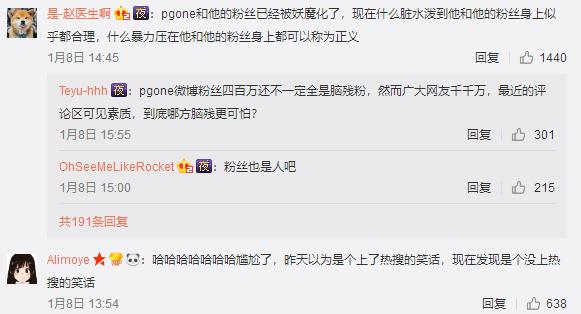 这种自己竖个靶子,然后大肆批判一番的做法理所当然地引起了部分网友的反感。网友开始反思对PG One粉丝的攻击: