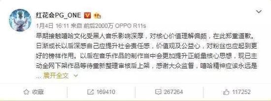 前几天,紫光阁官微连续发文,就PGOne音乐作品涉嫌教唆青少年吸毒及侮辱女性一事和其他官方媒体一起做出强烈谴责。