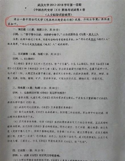 迎来了“中国古代文学”课程的期末考试