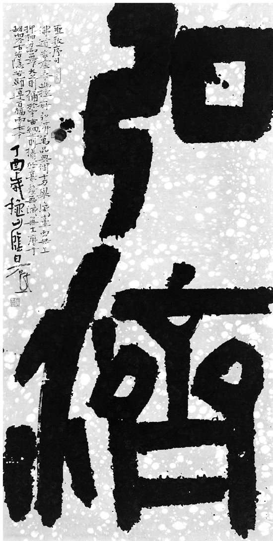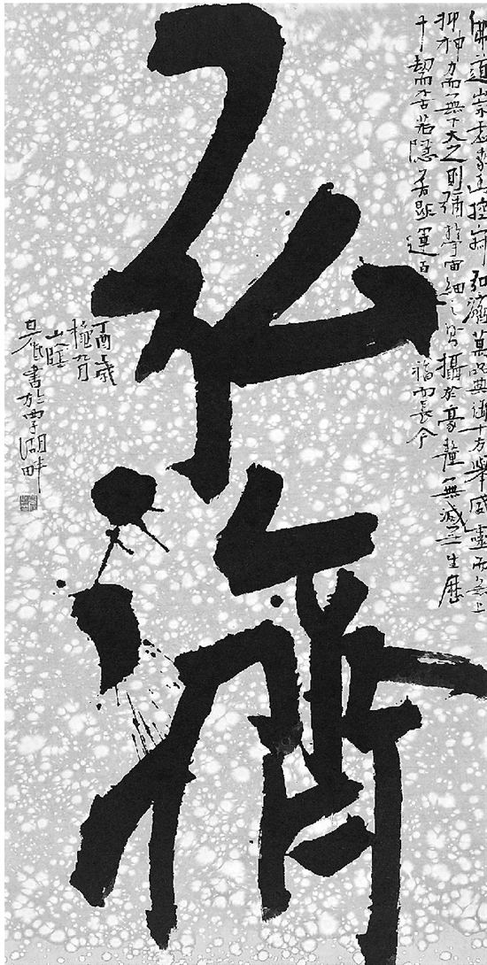 他曾经这样说:“形式是文化的浓缩与提炼。当我们将一篇字或一个字中的点画只是简单放置而不及其互相之间的关系时,这只是一种简单的书写,是没有文化价值与意义的书写。我们说‘简’、‘刚柔相济’、‘虚实相生’、‘大巧若拙’等形式概念时,其实正是中国传统中最具文化的表达,同时也是最具形式意识的表现。”