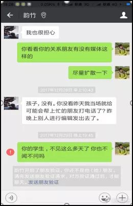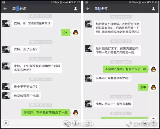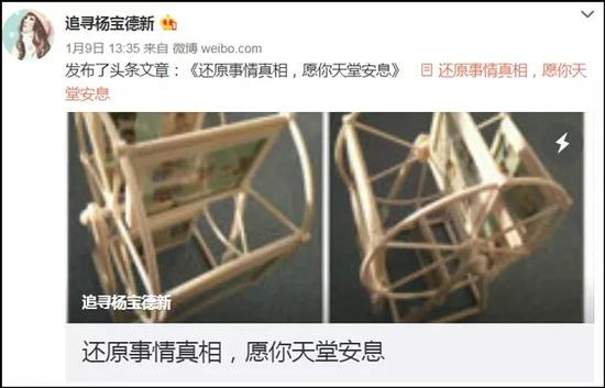 1月9日,杨宝德女友(微博名:@追寻杨宝德新)在微博发表《还原事情真相,愿你天堂安息》一文,贴出杨宝德与其导师周某的部分聊天记录。
