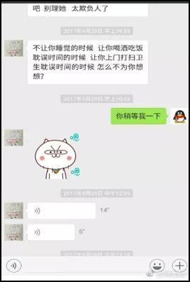 杨宝德女友指出,二人聊天记录显示,杨宝德经常被要求早上去停车场接送她去办公室,拎包送水;中午给她买饭,陪她吃饭(有时候即使杨已经买好饭在吃也得去),白天陪她逛超市。周某还在对话中叫杨宝德“臭小子”。