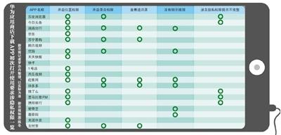 新京报记者从华为应用商店安装20款主流APP发现,其中14款APP在首次安装使用时对可能涉及的敏感权限进行弹窗提示,但有5款APP对涉及隐私权限的提示有“疏漏”。