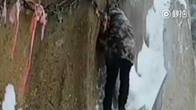 原标题:惊险!他们在华山峭壁边扫雪走红 背后是万丈深渊