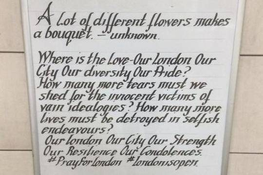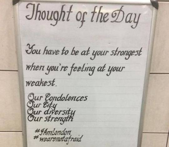 2017年6月,伦敦市中心的伦敦桥上发生恐怖袭击后,萨瑟兰德的每日金句,连续三天传达的是不屈不挠的信息。