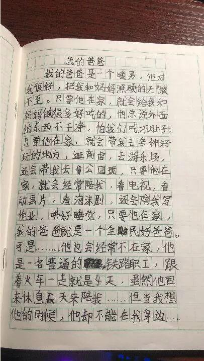 这是 9 岁的王艺儒写给爸爸的一封信。他的爸爸王磊是沈阳客运段客运八队沈阳北至成都 K388 次列车的列车长。小艺儒最大的愿望就是除夕晚上能和爸爸一起放烟花,可就是这个小小的愿望都没有实现过。由于工作原因,王磊已经连续 9 年没陪孩子在家过春节了。