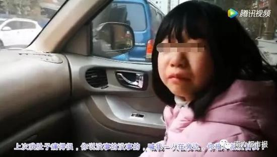 陈先生:拍视频那天是2月1日,我带着女儿去上班,原本应该5点半下班,因为比较忙,就加班到了6点半左右我才回办公室,回到办公室的时候女儿就跟我说她很饿,在带她去吃饭的路上,女儿就哭了,跟我抱怨。