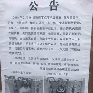 2月16日(农历大年初一),落款为“双峰县禁燃领导小组城西执法组”的一则追捕“公告”引发关注。该公告称,双峰县一男一女在2月16日凌晨零点零八分,在小区外坪违规放鞭炮,被县委主要领导批示,当地公安机关设立奖金一万元追捕。该公告刚一发出就引发巨大争议,有律师发文称是“权力的任性,法治的不规范”。今日女报/凤网记者联系到双峰县委书记禹敏。禹敏称,此事他没有批示。他同时表示,双峰县这次禁燃是顺应群众的呼声,深得老百姓的支持,但在具体政策落实中需要进一步规范。“我们会认真反思,进一步依法规范办事。”(首席记者 谭里和)