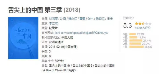 《舌尖3》的豆瓣评分已经从7分下降到5.3了……