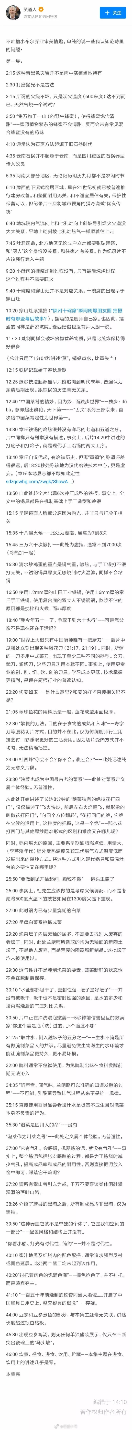 不仅如此,《舌尖3》现在已经变成了挑错大会,各地网友找美食错误,知乎这个按分钟挑错的回答,今天转遍了朋友圈 ↓