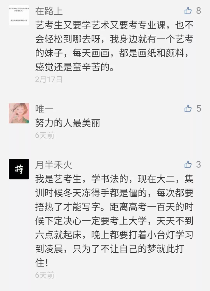 艺考≠易考  网友:努力的人最美丽