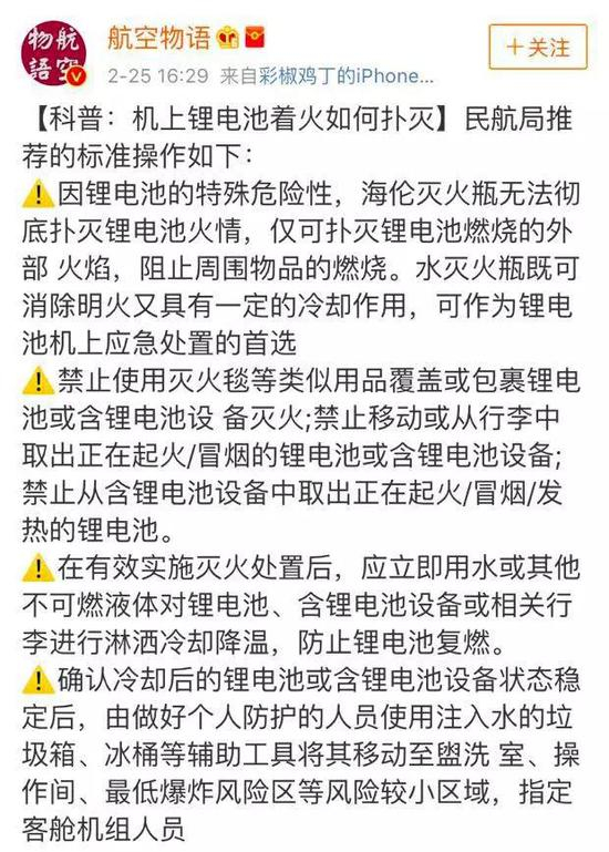 原标题:空姐快速灭火还被吐槽不专业?官方:机上充电宝着火就该拿水浇!
