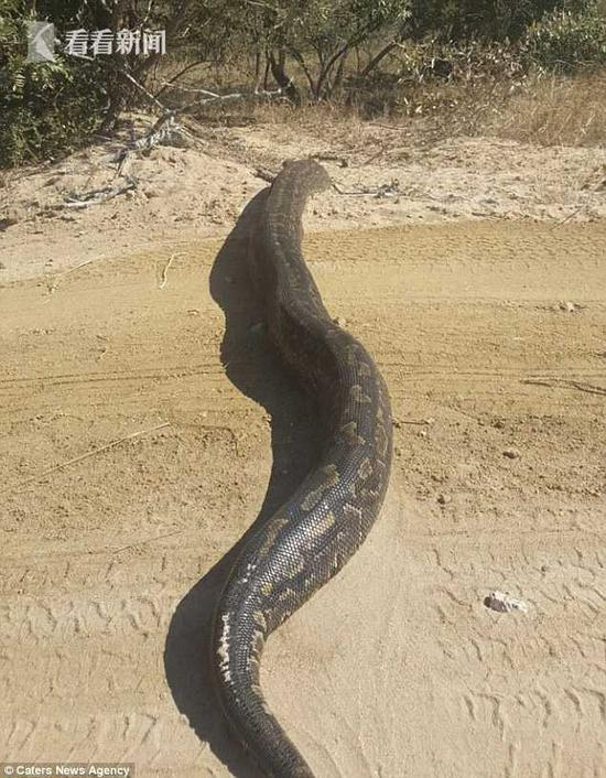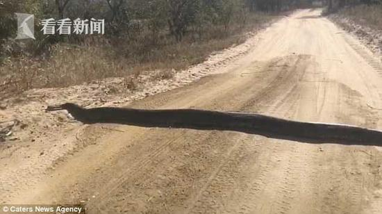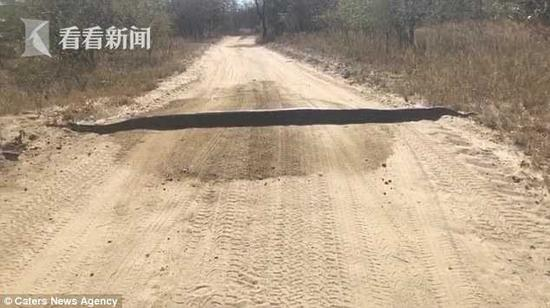 据英国《每日邮报》日前报道,在南非的林波波省乡间一条公路上,一位名叫卡梅隆·沃特的50岁男子驾车带着孩子正在行驶中,突然发现前方道路上横着一条黑色的东西,他以为是减速带,于是放慢车速逐渐靠近。