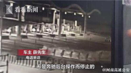 薛先生:“不是奔驰后台操作停止的,我给400打电话,他们的确提供了很多方法,但是确实都没用。后来一个交警叫我开车门开车门,一开始我还以为他要我开车门跳车,后来我把车门打开,安全带解开,他的车速就直接下降了,过完关卡后我又重新操作了一遍,过完关卡大概10公里,开始降速,慢慢降速,到华阴收费站的时候,才停的车。