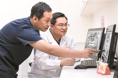 本届德国种牙节引进全套数字化诊疗设备,使手术更安全。全景CT精确测出牙槽骨的高度、宽度、密度,医生通过电脑三维模拟成像,精密计算种植点位,预览种植效果,借助3D导板实现精准、快速的植入,完成手术。“数字化诊疗设备让种植过程更安全、微创,速度加快20%,减少创口暴露时间,降低感染风险。”