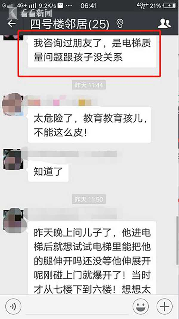 这段监控视频,被当事男孩的妈妈发到了小区群里。孩子的母亲说:“当时孩子出于好奇,想试试电梯里能否伸开腿,可谁知,还没等腿伸直,刚碰上门,没来得及使劲呢,电梯门就爆开了。”