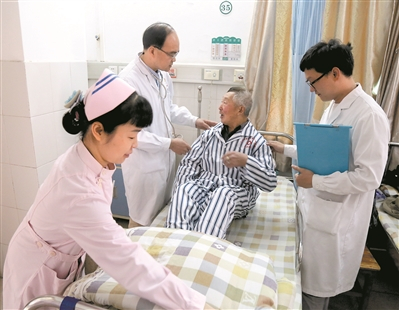 老人的主治医生陈尚学说,经过问诊,初步判断老人患有胸椎、脊柱改变,反流性食管炎。找准症状,治疗效果很好,老人病情很快有了好转。“3月28日晚上,老人出院前一晚,拿出一张写满字的纸交给值班护士,纸上是一首打油诗,说是为了表达对医护人员的感谢。”主任医师陈东成说。