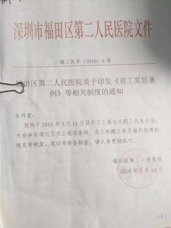 4月12日,南都记者来到位于上梅林的福田区第二人民医院,医院办公室主任刘先生表示,福田区第二人民医院的员工奖惩条例等相关制度写明,一个月内事假天数累计达10天及以上的,当月基础性绩效工资全部扣除。