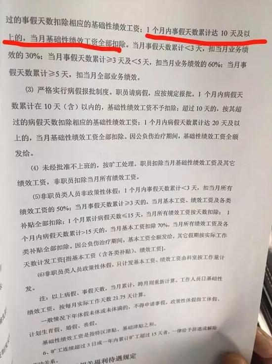 据吴先生提供的工资查询表显示,医院扣除了他当月2600元的基本工资,其当月绩效工资也只有440元。“对比其他月份,绩效工资都有六七千,九月份我请假了十天,只发了440元。”吴先生说。