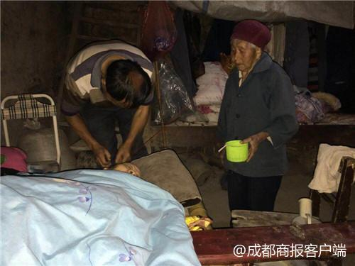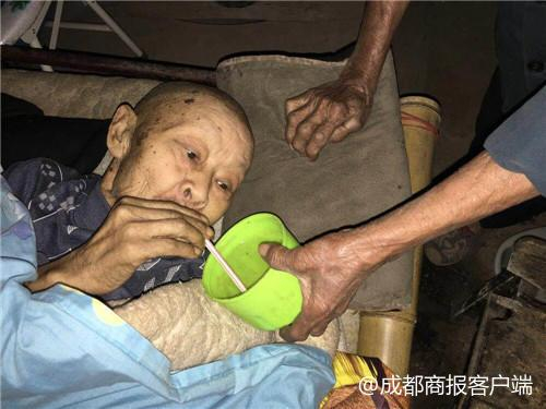 老俩口薅秧种菜,加上国家提供的老年津贴,日子过得去,基本没主动找子女们讨要过赡养费。转折发生在去年11月,陈大爷在屋后的斜坡上摔倒,致右腿骨骨折。送医后因年纪太大,没有施行手术,出院后至今卧床不起,无法坐立,吃喝拉撒都在床上,但年迈体弱的老伴张婆婆又搬不动老头子。