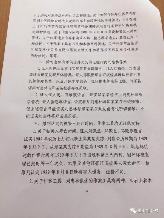 根据刘忠林辩护人张宇鹏律师查阅以往的卷宗时发现,1990年10月29日当晚9点,刘忠林被拘传,11点,形成了第一份供述,其中刘忠林坚称自己没有杀人,一天后,刘忠林的第二份供述形成了,他在供述中表示认罪。