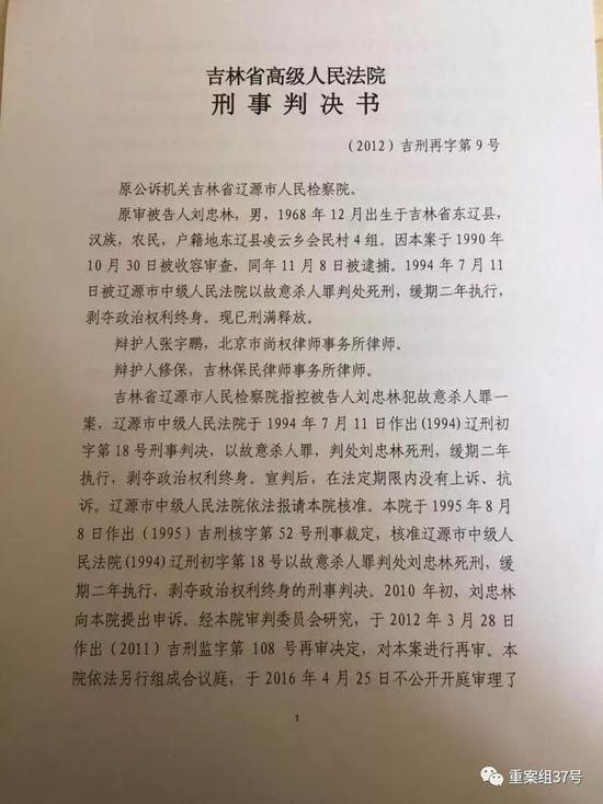 重案组37号(微信ID:zhonganzu37)多方了解到,一审判决前,刘忠林没有律师,让他失去辩护的机会;一审判决后,只有小学文化的刘忠林当庭口头提出上诉,但吉林高院工作人员以没有形成上诉状为由没将该案分配案号审理,错过二审;吉林高院启动再审,久拖6年未宣判,按照《刑事诉讼法》第247条规定:“人民法院按照审判监督程序重新审判的案件,应当在作出提审、再审决定之日起三个月以内审结,需要延长期限的,不得超过六个月。”