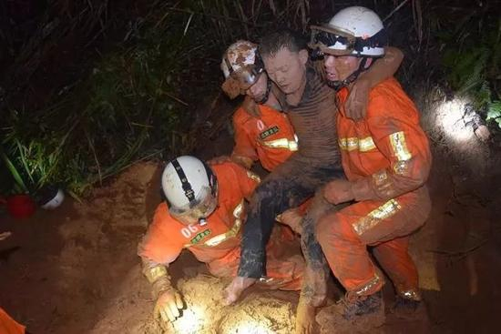 比如去年,福建龙岩市一处山体滑坡埋住了一名男子,消防官兵趴在泥土上,徒手挖掘了2个多小时,嘴巴、脸上都溅上了泥土,最终将男子安全救出。