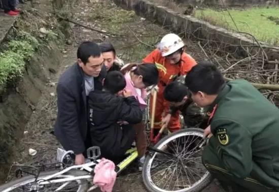 今年2月,大年初六,重庆市涪陵区公安消防支队接到报警,一名小男孩的脚被卡在自行车里无法动弹,请求消防支援。救援官兵到达现场后发现,车头变形卡住了小男孩的脚踝部分,轻轻移动一点,小男孩就疼得眼泪直流,让大人看着都揪心。