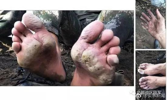 近日,网友@-四分三十三秒- 在微博上发布了一张照片,名叫“救火后”。图中,是两双“泡烂”了的脚,和一只沾满泥泞的粗糙的手。