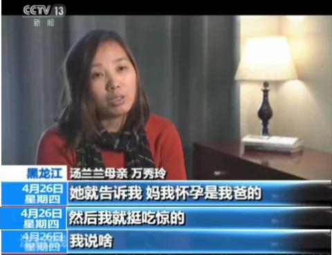 那天,万秀玲接到女儿汤兰兰在电话,电话里她说,妈我怀孕是我爸的。然后我就挺吃惊的,我说啥?”