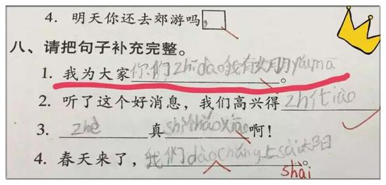 原标题:2018版小学生神填空,家长沉默,老师流泪