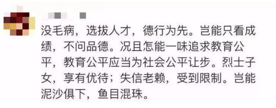 如果有失信情况存在,就不能进行高消费,昌乐二中这种民办学校收费要比公立高中收费高,昌乐二中出台这个规定是符合规定也是合法的。至于对于有的家长提出来的质疑,认为剥夺了孩子的受教育权利,这是一种误读,孩子的教育权利还是得到保障的,还可以通过上公立的学校等等来接受教育。