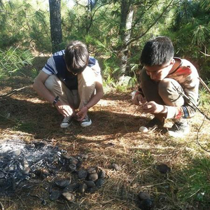 3月下旬的某一天,赤尔(右)和同学在上山烤土豆、抓青蛙。 受访者供图